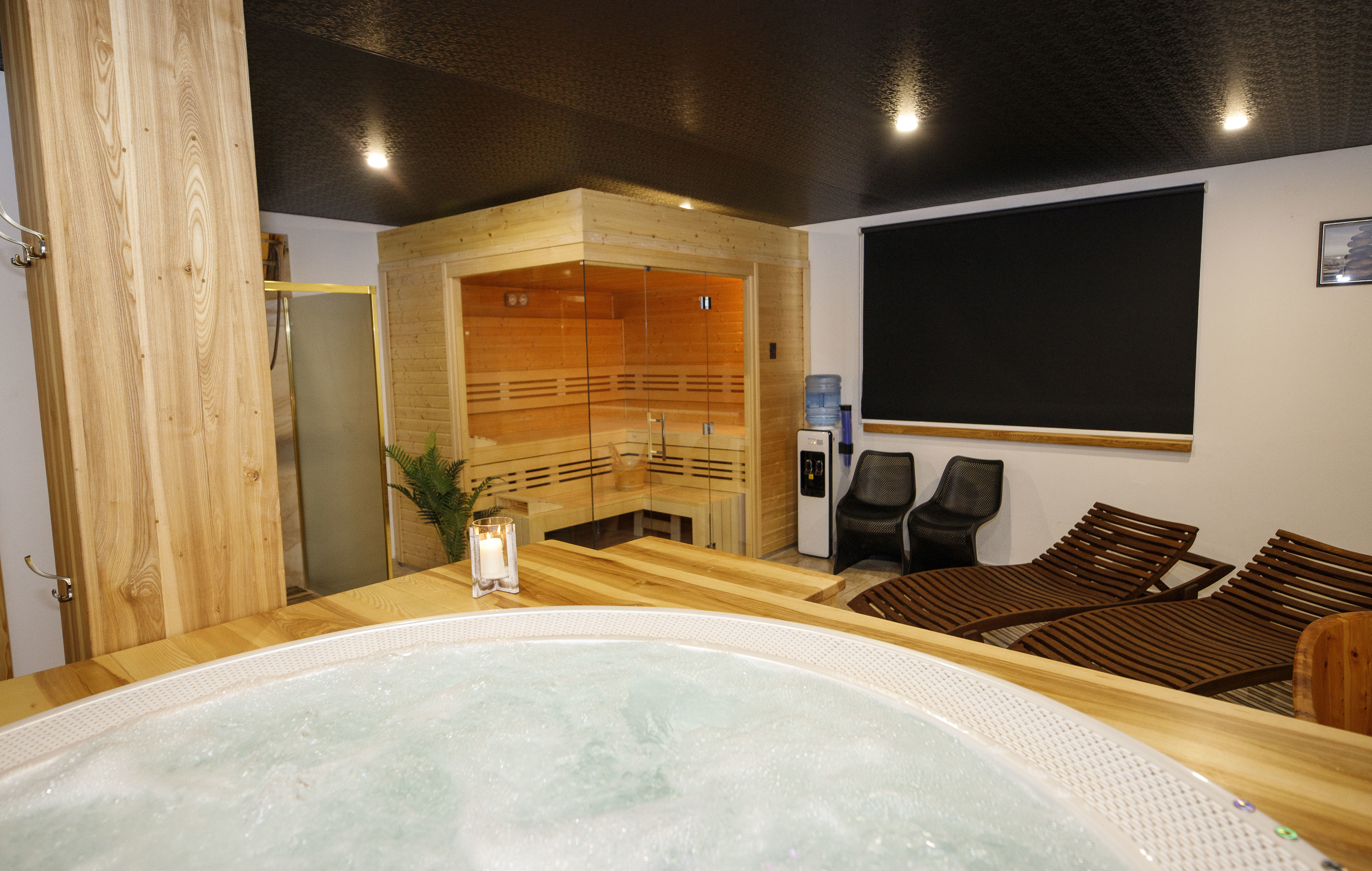 Součástí je moderní privátní wellness s vířivkou pro 4 osoby, saunou a relaxační zónou, které hotel nedávno otevřel.